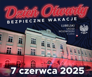 Wojewoda Lubelski oraz współorganizatorzy zapraszają na Dzień Otwarty pod hasłem „Bezpieczne Wakacje” oraz Noc Kultury, które odbędą się w sobotę, 7 czerwca 2025 roku w siedzibie LUW przy ul. Spokojnej 4 w Lublinie.
